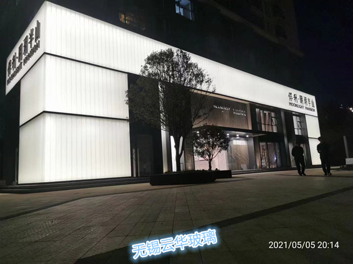選用無錫云華K25*60*7、K25*90*8超白香梨紋噴砂U型玻璃