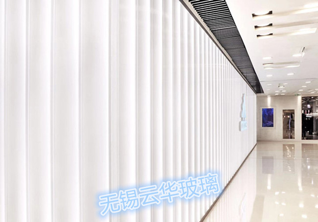 選用K25-262*60*7超白細條紋噴砂U型玻璃